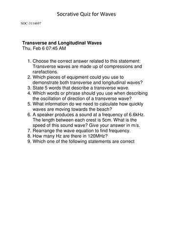 Application Name: Socrative Com Waves Quiz For Higher Tier Teaching Resources